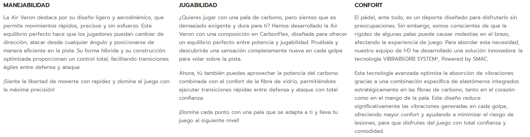 La Air Veron no solo es sinónimo de rendimiento, sino también de versatilidad, combinando manejabilidad, jugabilidad y confort para que cualquier jugador pueda dar lo mejor de sí mismo en la pista.