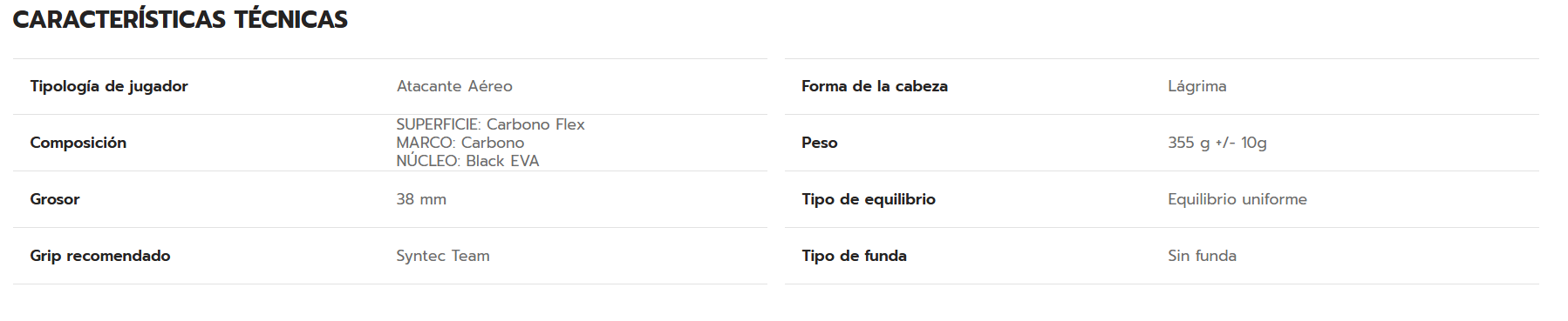 Además, su forma híbrida y peso ligero, ofrecen una manejabilidad excepcional, ideal para transiciones rápidas y ataques desde cualquier ángulo de la pista. Su diseño aerodinámico facilita movimientos precisos y rápidos, haciendo que sea una opción destacada para dominar el juego aéreo y atacar con confianza.