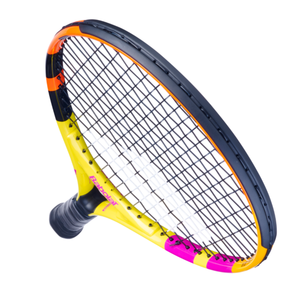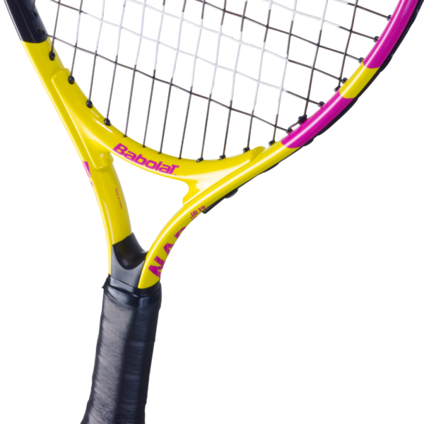 La raqueta Nadal Junior 19 es más ligera, manejable y permisiva, lo que facilita el aprendizaje del tenis y permite progresar rápidamente divirtiéndose en la pista.