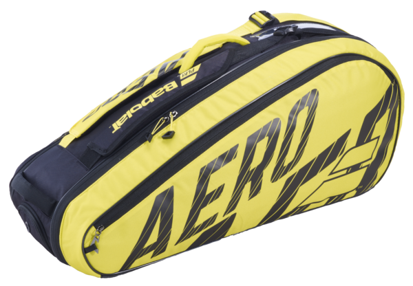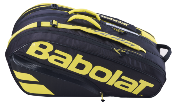 Babolat Pure Aero colección pasada está diseñado para combinar con los colores del Pure Aero. Esta bolsa de raqueta extra espaciosa puede contener fácilmente hasta 12 raquetas y cuenta con un exterior ultra duradero e impermeable. Ideal para jugadores avanzados que necesitan un amplio espacio para llevar todo el equipo y una bolsa que aguanta su horario exigente